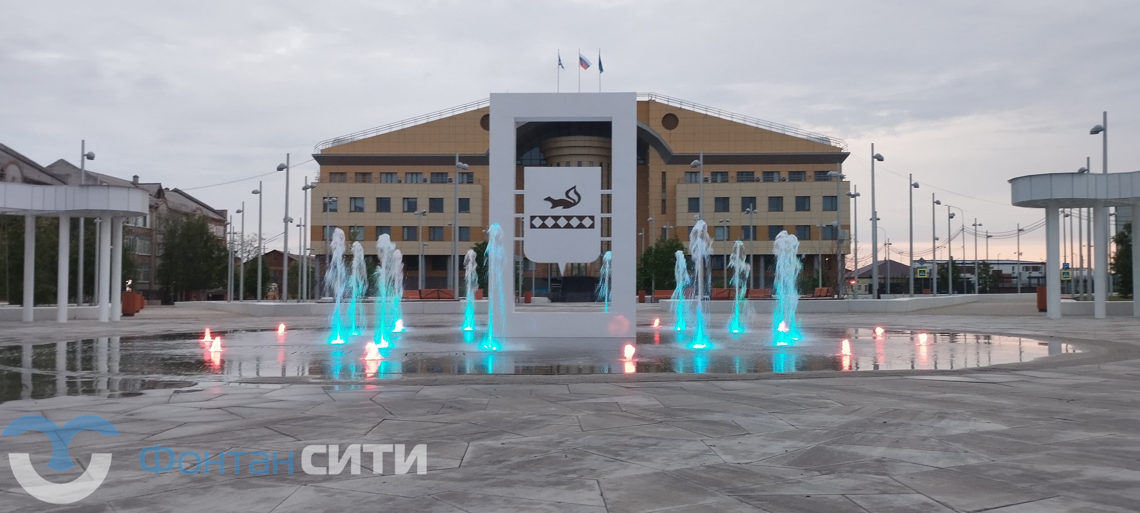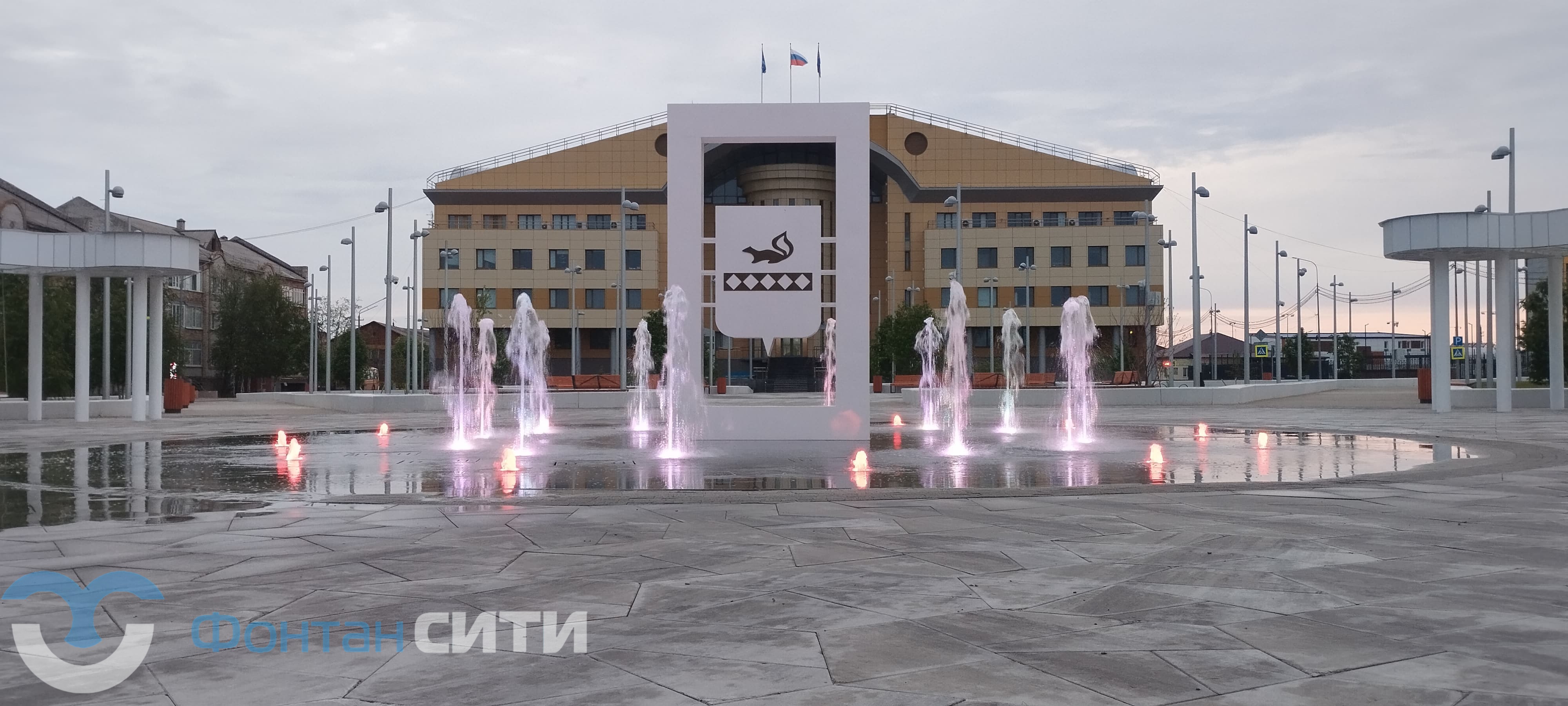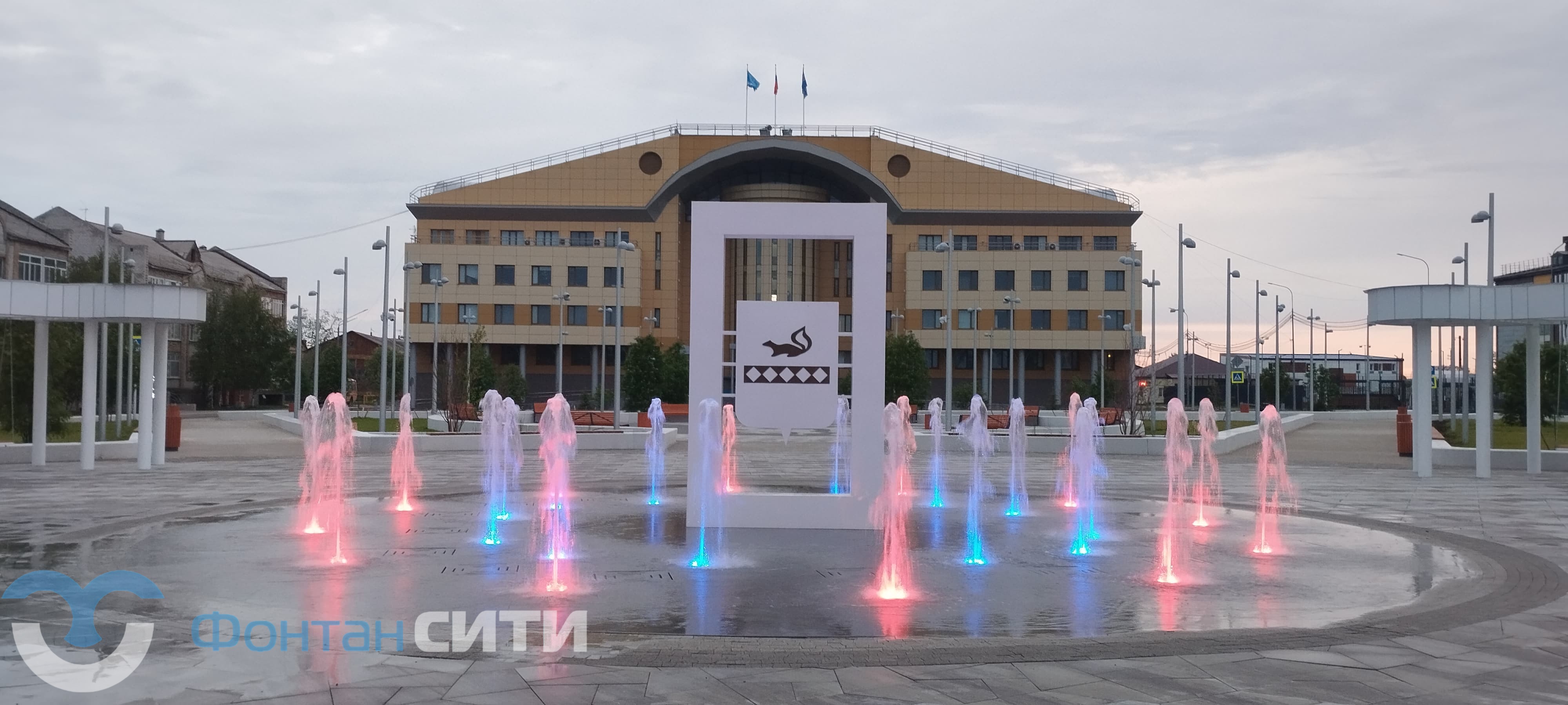 В северной части Тарко-Сале, на территории сквера «Юбилейный», завершено устройство современного пешеходного («сухого») фонтана — конструкции без чаши, где струи воды поднимаются прямо из мощёной поверхности и дополняются художественной подсветкой. Этот элемент стал ключевым акцентом обновлённого общественного пространства, реализованного по федеральной программе «Формирование комфортной городской среды».