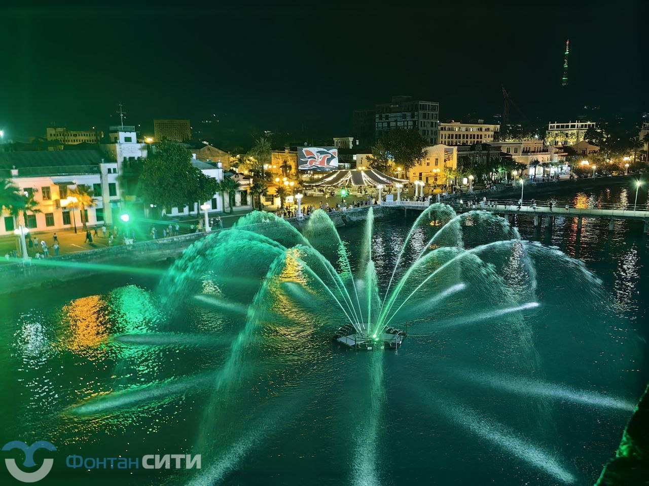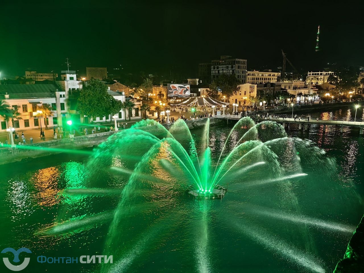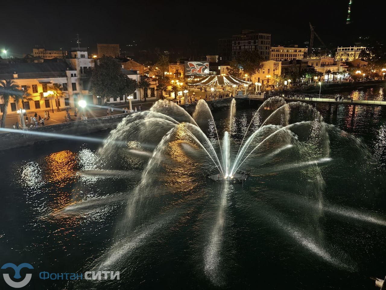 На набережной Сухума появился новый технический шедевр — плавающий фонтанный комплекс модели FC 6000 dynamic RGBW. Эта понтонная конструкция с якорным креплением весит почти три тонны, питается от 13 погружных насосов общей мощностью 115 кВт и способна поднимать центральную струю воды на высоту до 30 метров, а 12 периферийных струй — до 15 метров. Эффект дополняет динамическая подсветка из 33 подводных светильников с полным спектром RGBW, создающая вечерние водно-световые представления.