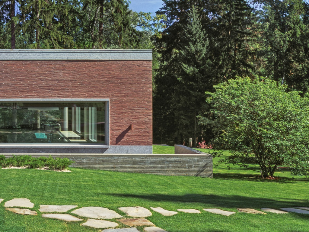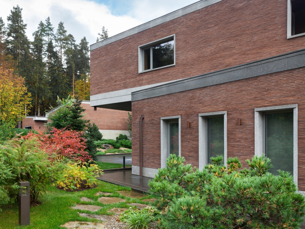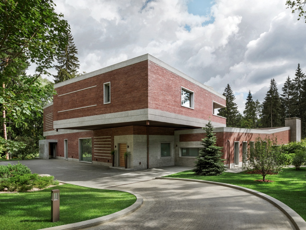 Ключевая идея данного проекта — взаимодействие архитектуры, интерьера и ландшафта. Дом стал единым целым с природной средой: в любой его точке можно почувствовать окружение леса. Подобного результата удалось достичь благодаря уникальному архитектурно-ландшафтному проекту, по которому в доме были предусмотрены большие окна и одновременно с этим продуманы виды, открывающиеся из этих окон. Данная идея позволила создать невероятное ощущение, будто природа является естественным продолжением жилого пространства.