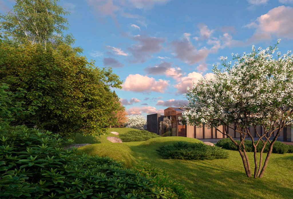 Благодаря геопластике с камнями из благородных пород, можжевельникам и другим кустарникам, подчеркивающим сложность композиции, была достигнута основная задача проекта - пейзажный сад. Дизайн этой части участка был разработан в первую очередь, как визуальное и логичное продолжение фона из лесного массива. Дополнительным акцентом сада стали солитерные посадки плодовых деревьев.