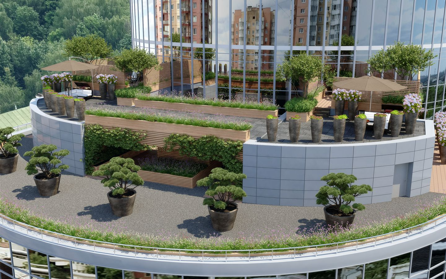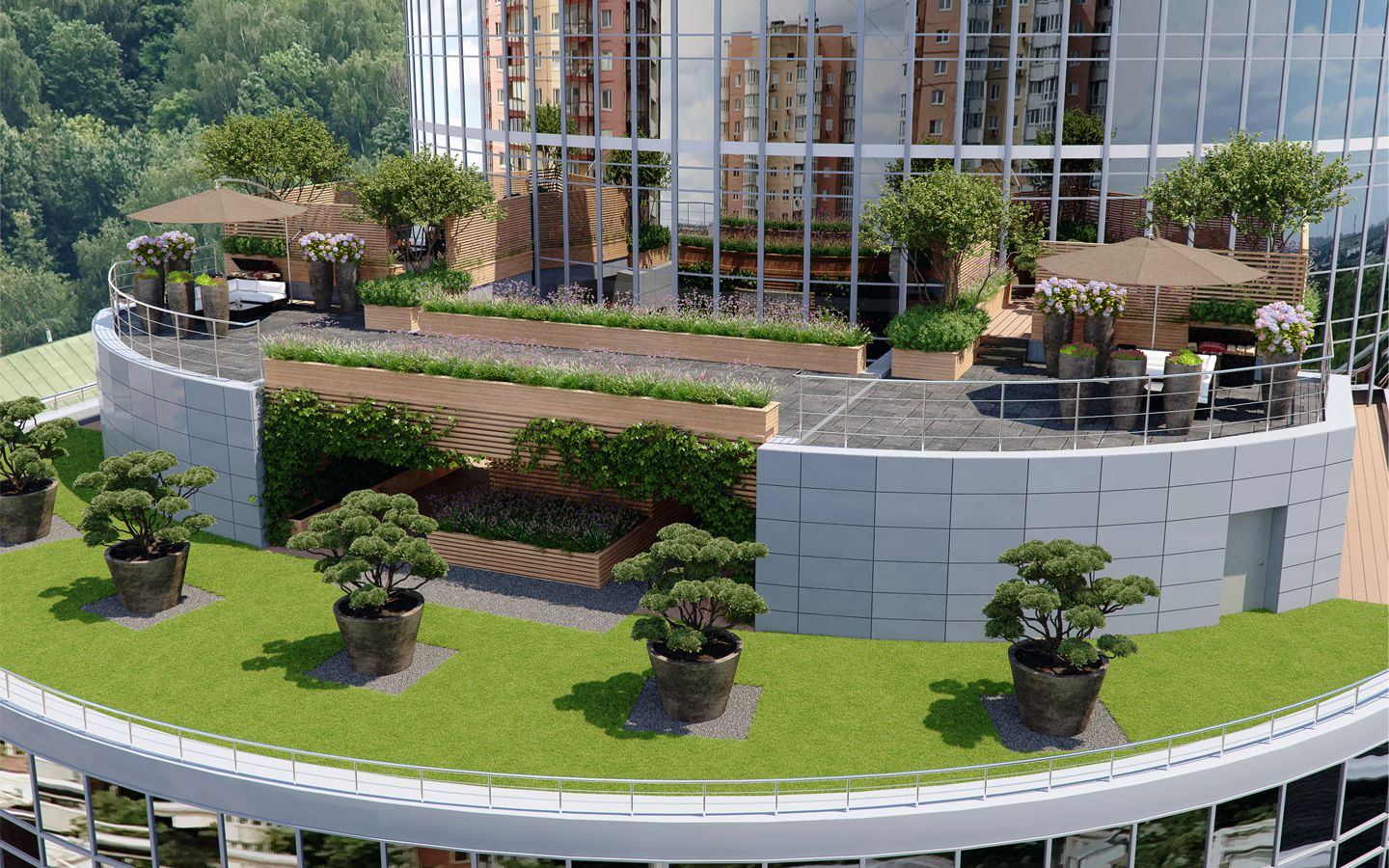 Компания- партнер ARTEZA разработали концепцию сада на крыше, который можно использовать совершенно по-разному: и как рабочий кабинет на свежем воздухе, и как тенистую переговорную, и как место для отдыха под лучами солнца.